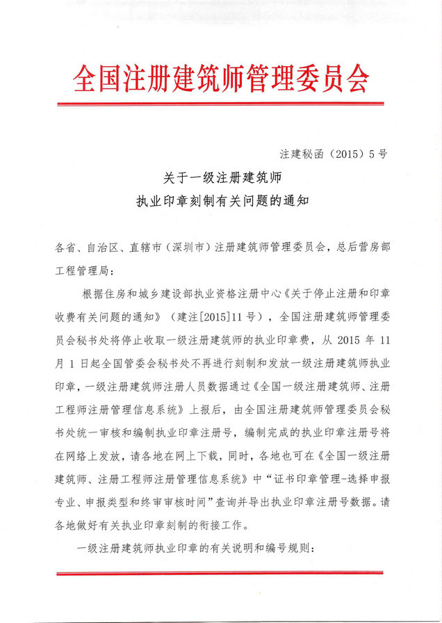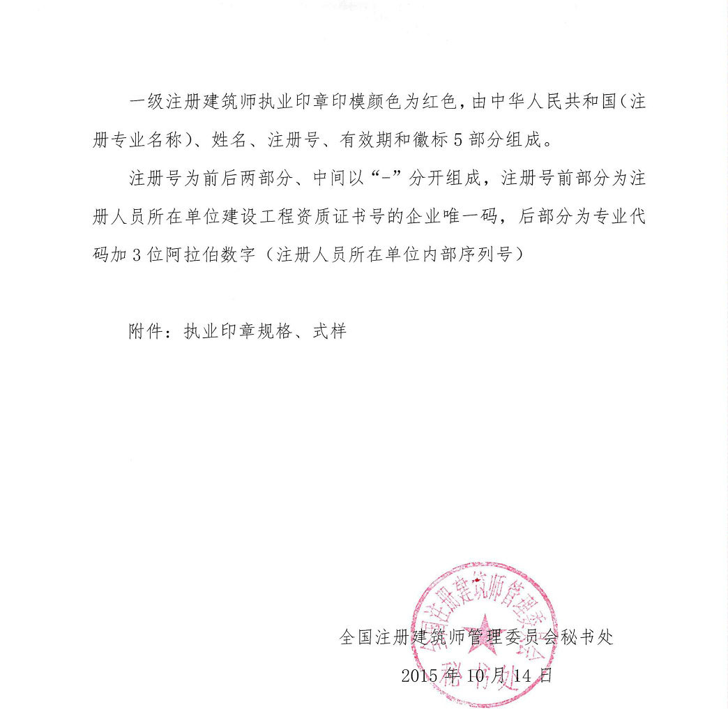 关于一级注册建筑师执业印章刻制有关问题的通知