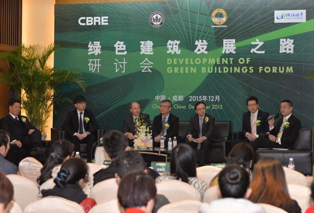2015年12月2日,由成都市楼宇经济促进会主办、成都市锦江区楼宇协会以及世界领先的商业地产服务和投资公司世邦魏理仕(CBRE)协办的 “绿色建筑发展之路”研讨会于12月2日在蓉圆满落幕。成都市楼宇经济促进会会长与成都市锦江区楼宇协会会长、世邦魏理仕中国区资产服务部和华西区资产服务部高层以及美国绿色建筑委员会(USGBC)高级副总裁受邀出席并围绕既有建筑绿色发展方向、LEED认证、超高层绿色建筑、成都绿色建筑发展等话题发表独特见解。逾100位知名开发商、行业资深人士及主流媒体出席并与在场嘉宾展开深入探讨与交流。